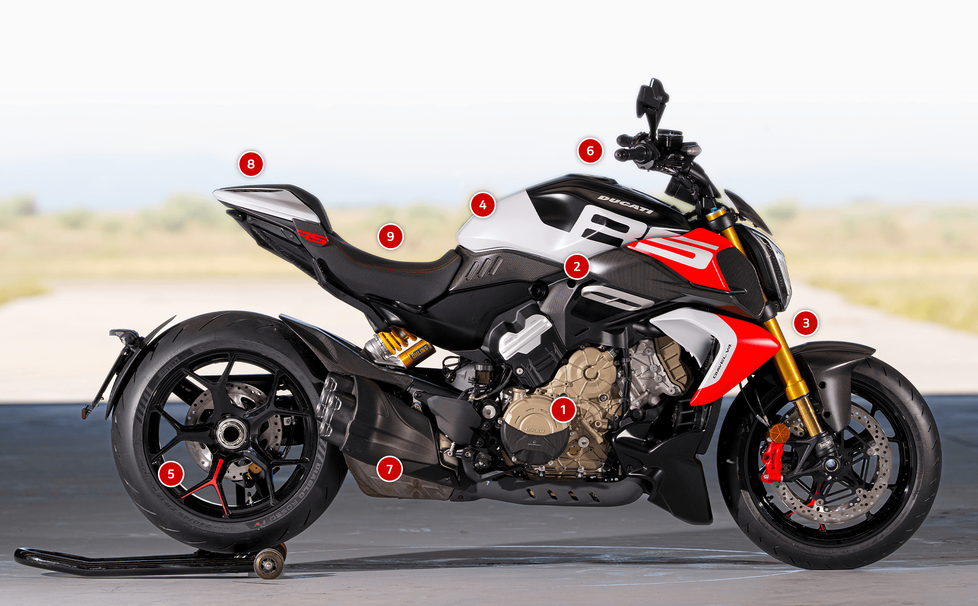 杜卡迪Diavel V4 RS配备Öhlins悬架系统,既能提供运动骑行的强劲支撑,亦兼顾巡航舒适性。