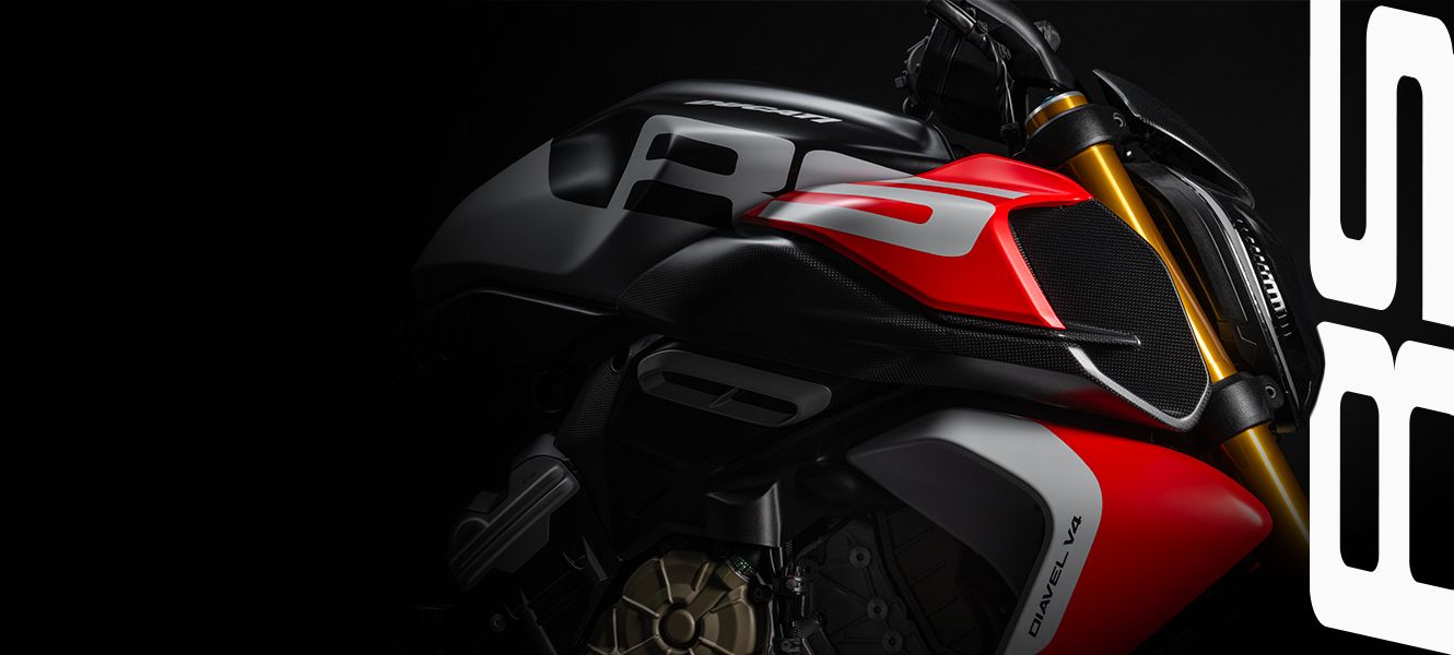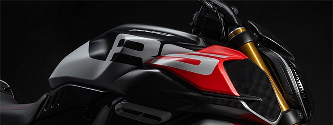 全新设计语言赋予Diavel V4 RS更运动、更凌厉的轮廓。油箱肩部的新型复合式通风口将下部可见的碳纤维材质与上部红色涂装相结合,形成鲜明对比。侧板与涂装相呼应,强化前部力量感,凸显整车的视觉冲击力。