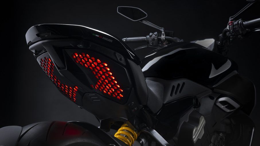 尾灯组由位于尾部下方的点状 LED 矩阵组成,同样具有明显的 Diavel 光学特征。