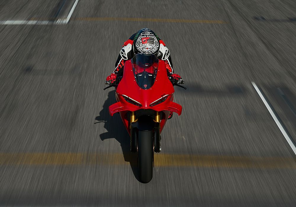 全新 Panigale V4 采用最新一代 Desmosedici Stradale 发动机。这款源于 MotoGP 的发动机经过改进,符合严格的Euro 5+ 标准和噪音阈值,最大功率达到 216 马力,重量减轻了 1 公斤。