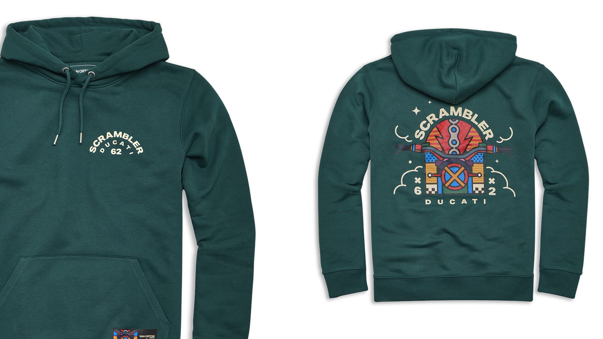 与Van Orton Design联袂打造的限定胶囊系列升华你的全速Full Throttle体验。这场合作将Scrambler Ducati的经典灵魂与Van Orton的动态艺术美学深度融合,把前卫的流行文化嵌入定制美学。该系列服饰以醒目的配色呼应机车尽显锋芒的黑金涂装,邀您尽释骑行个性,纵情拥抱the Land of Joy的澎湃能量。