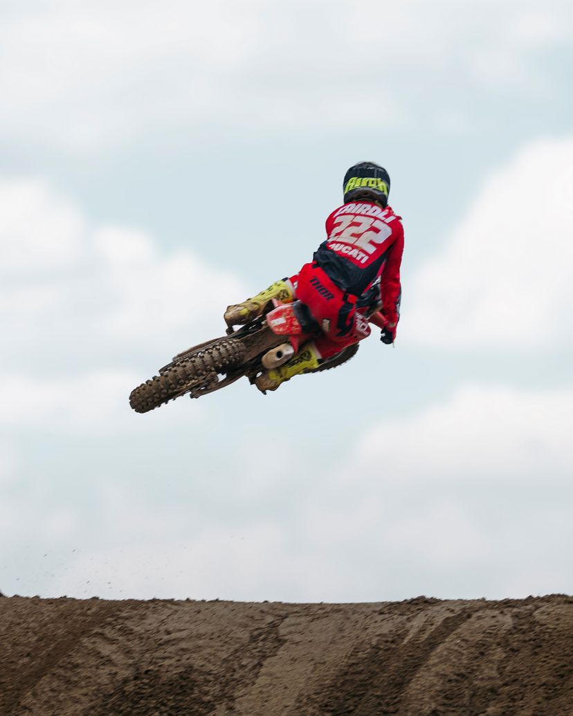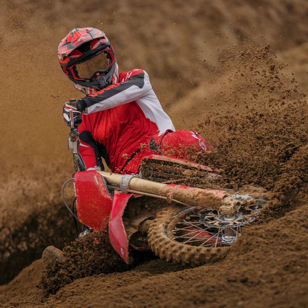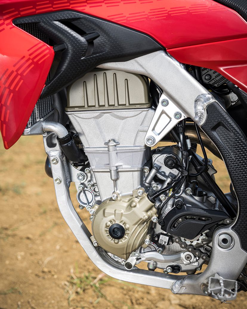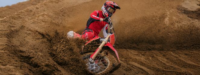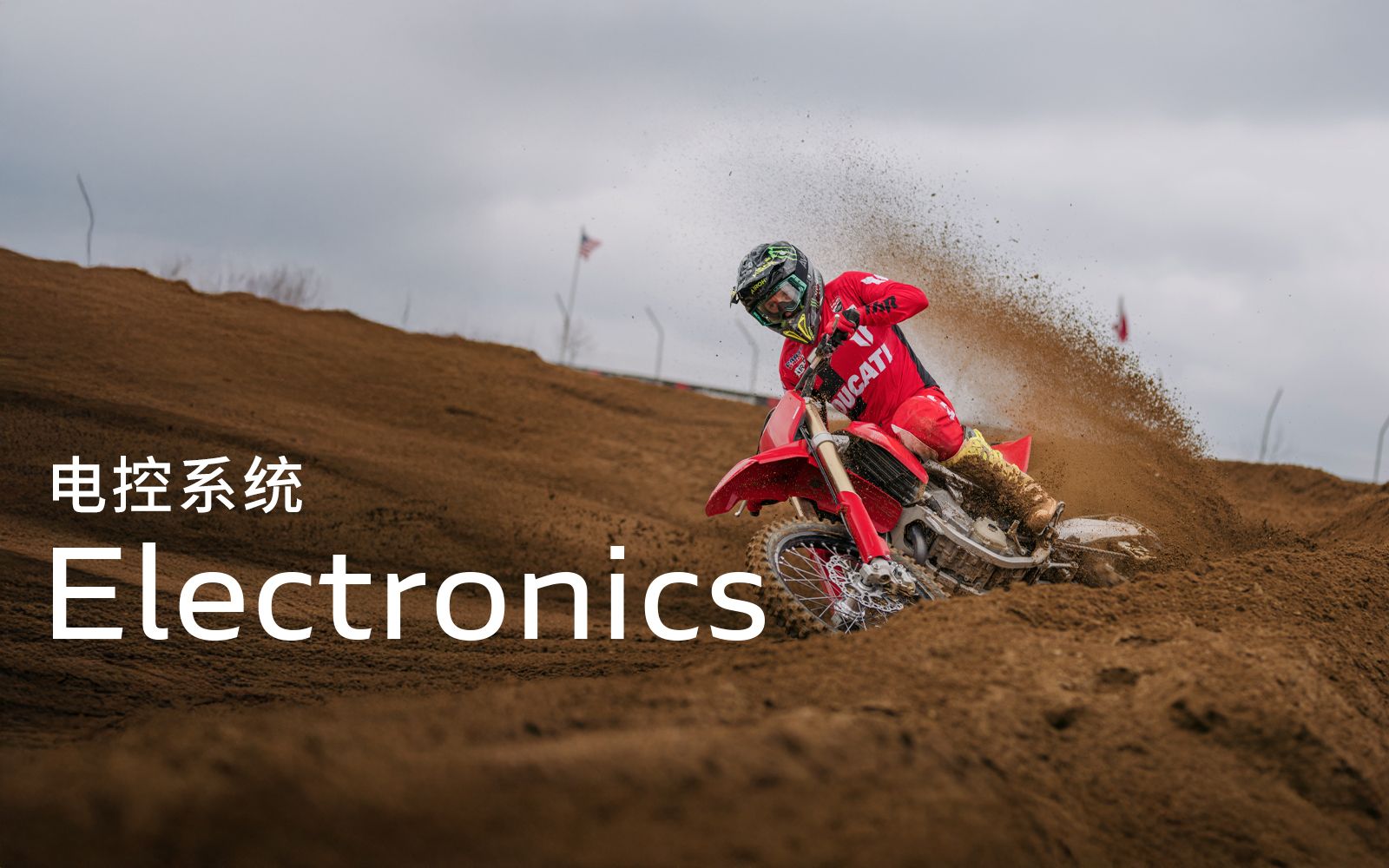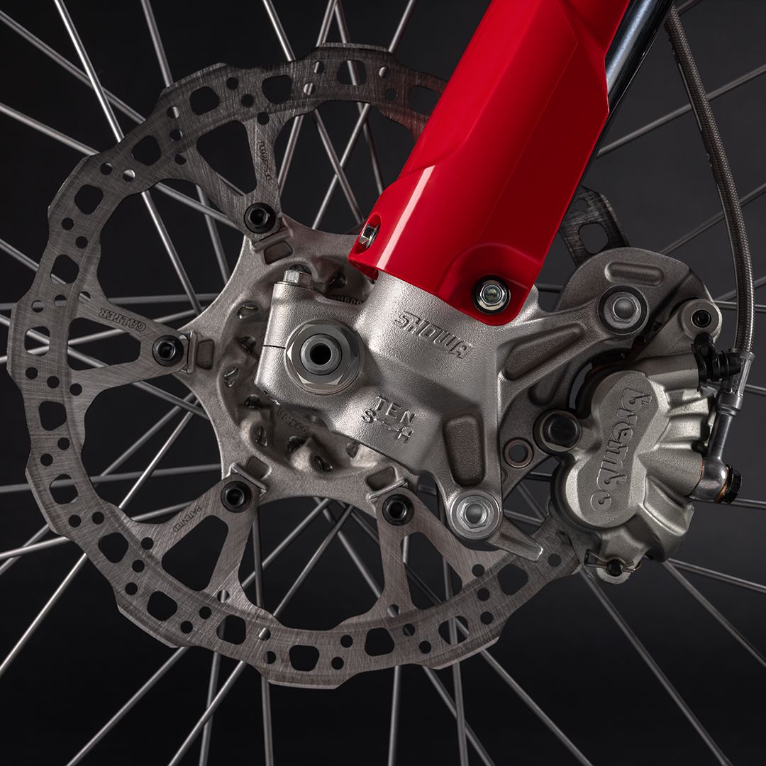 Desmo450 MX发动机是一款排量为449.6 cc的四冲程单缸发动机,配备Desmodromic系统、链条驱动的四气门双顶置凸轮轴(DOHC)以及镁合金发电机、缸盖和离合器盖。得益于Desmodromic气门正时系统,Desmo450发动机的转速可达11,900 rpm,确保起步时加速更猛、驱动更高效。Desmodromic系统无需传统正时系统中的气门弹簧,因而能实现更精准的控制,并减少摩擦损失,从而将竞赛性能发挥到极致。转速更高,动力更强,抢占领先优势胜券在握。事实上,Desmo450 MX在世界越野摩托车锦标赛(MXGP)的首秀中便两战两捷,次次拿下领先入弯的优势。