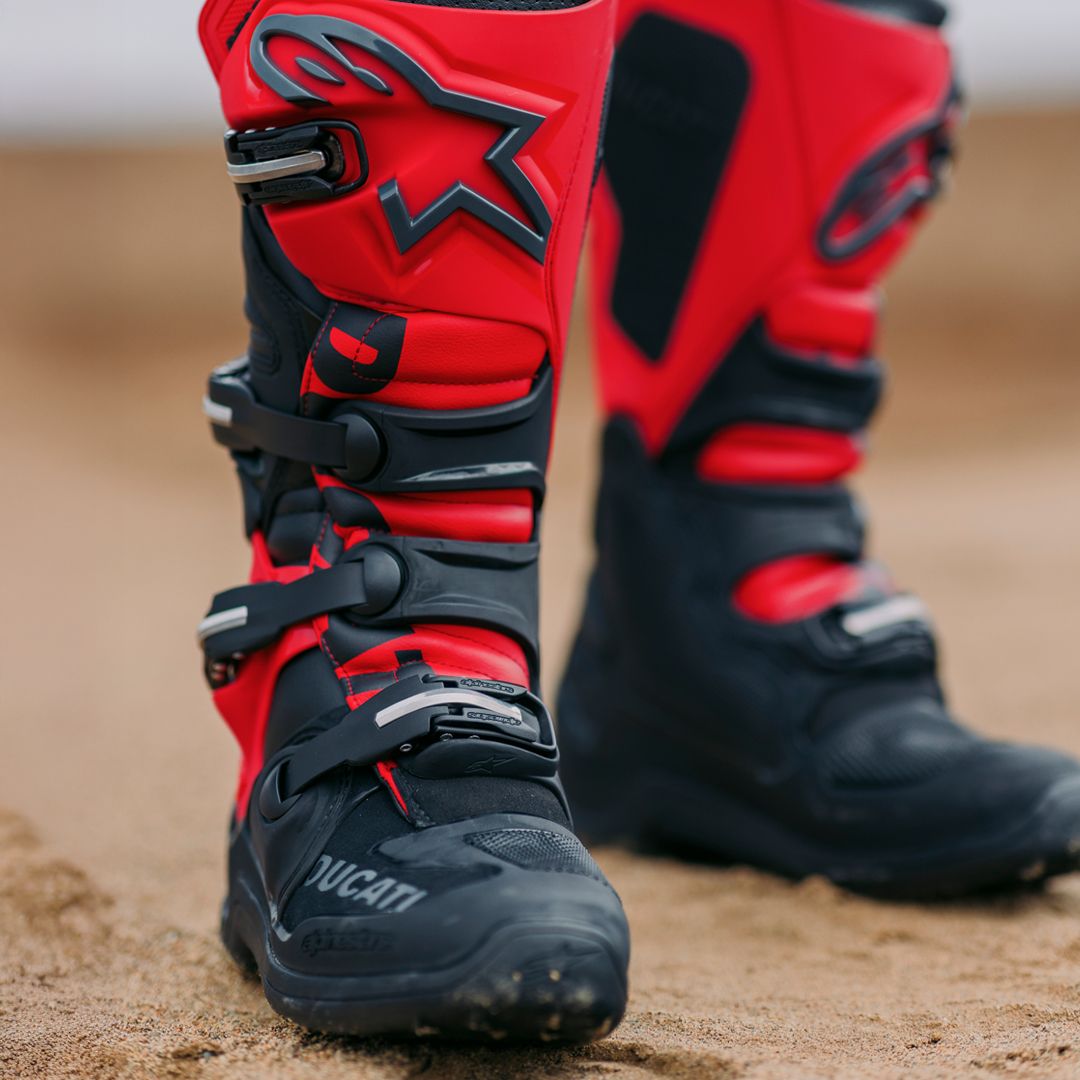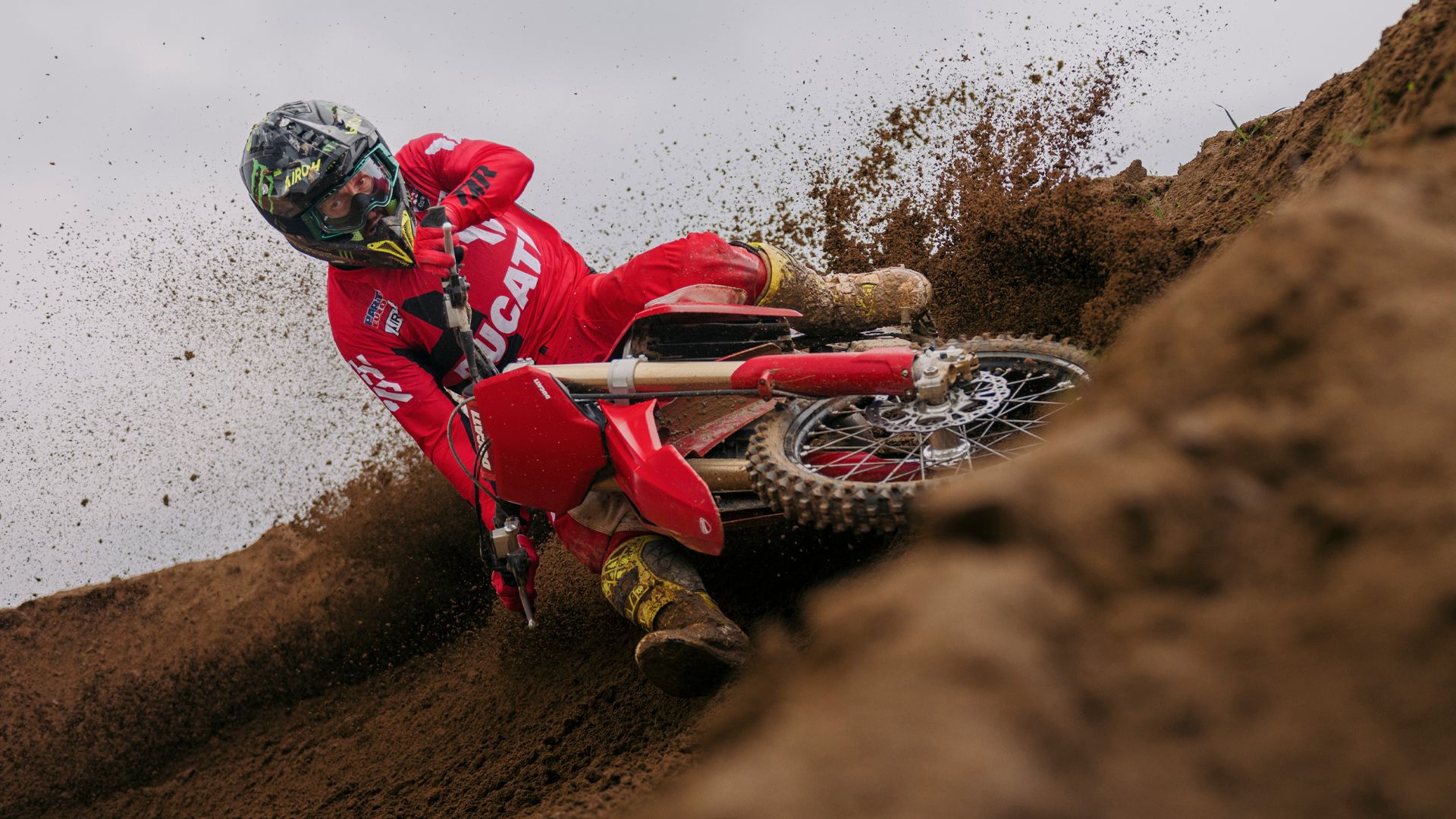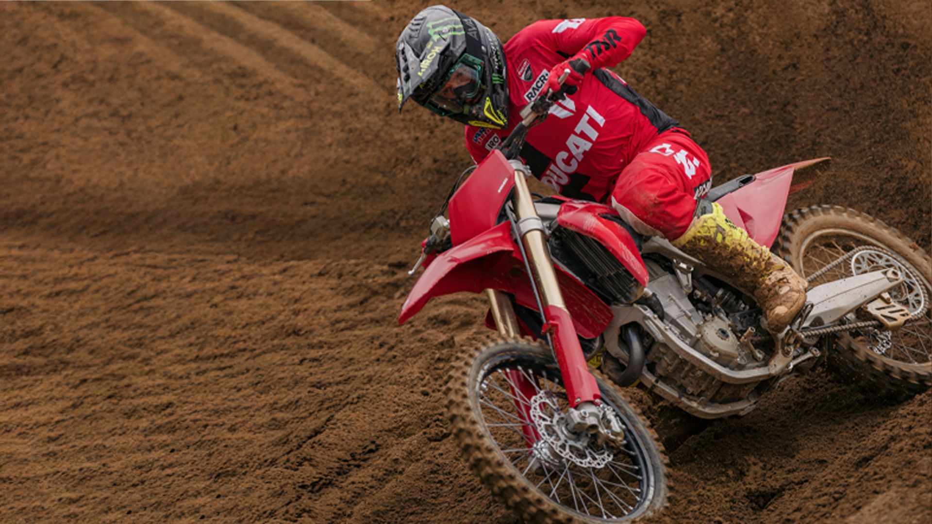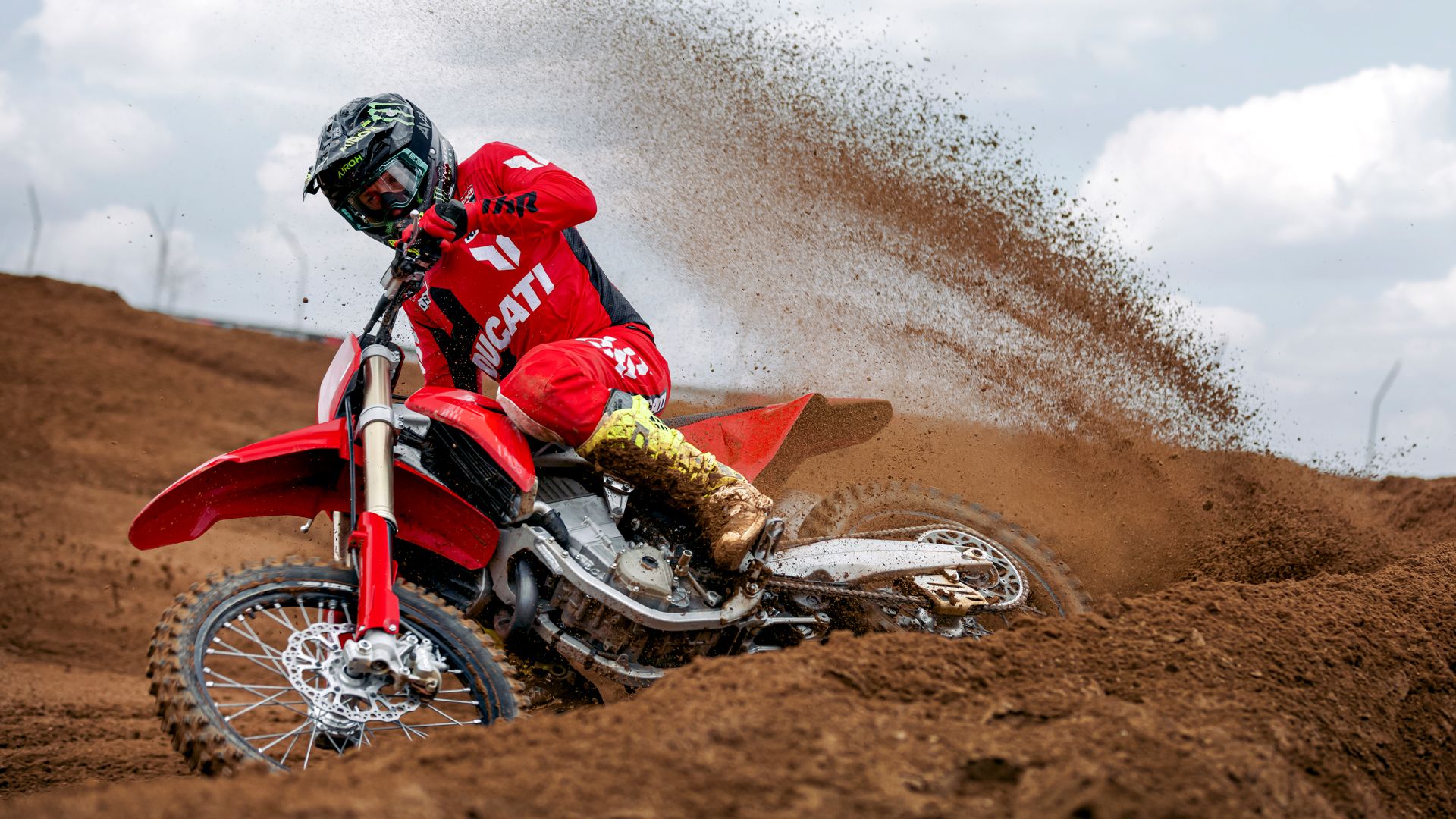 Desmo450 MX发动机是一款排量为449.6 cc的四冲程单缸发动机,配备Desmodromic系统、链条驱动的四气门双顶置凸轮轴(DOHC)以及镁合金发电机、缸盖和离合器盖。得益于Desmodromic气门正时系统,Desmo450发动机的转速可达11,900 rpm,确保起步时加速更猛、驱动更高效。Desmodromic系统无需传统正时系统中的气门弹簧,因而能实现更精准的控制,并减少摩擦损失,从而将竞赛性能发挥到极致。转速更高,动力更强,抢占领先优势胜券在握。事实上,Desmo450 MX在世界越野摩托车锦标赛(MXGP)的首秀中便两战两捷,次次拿下领先入弯的优势。