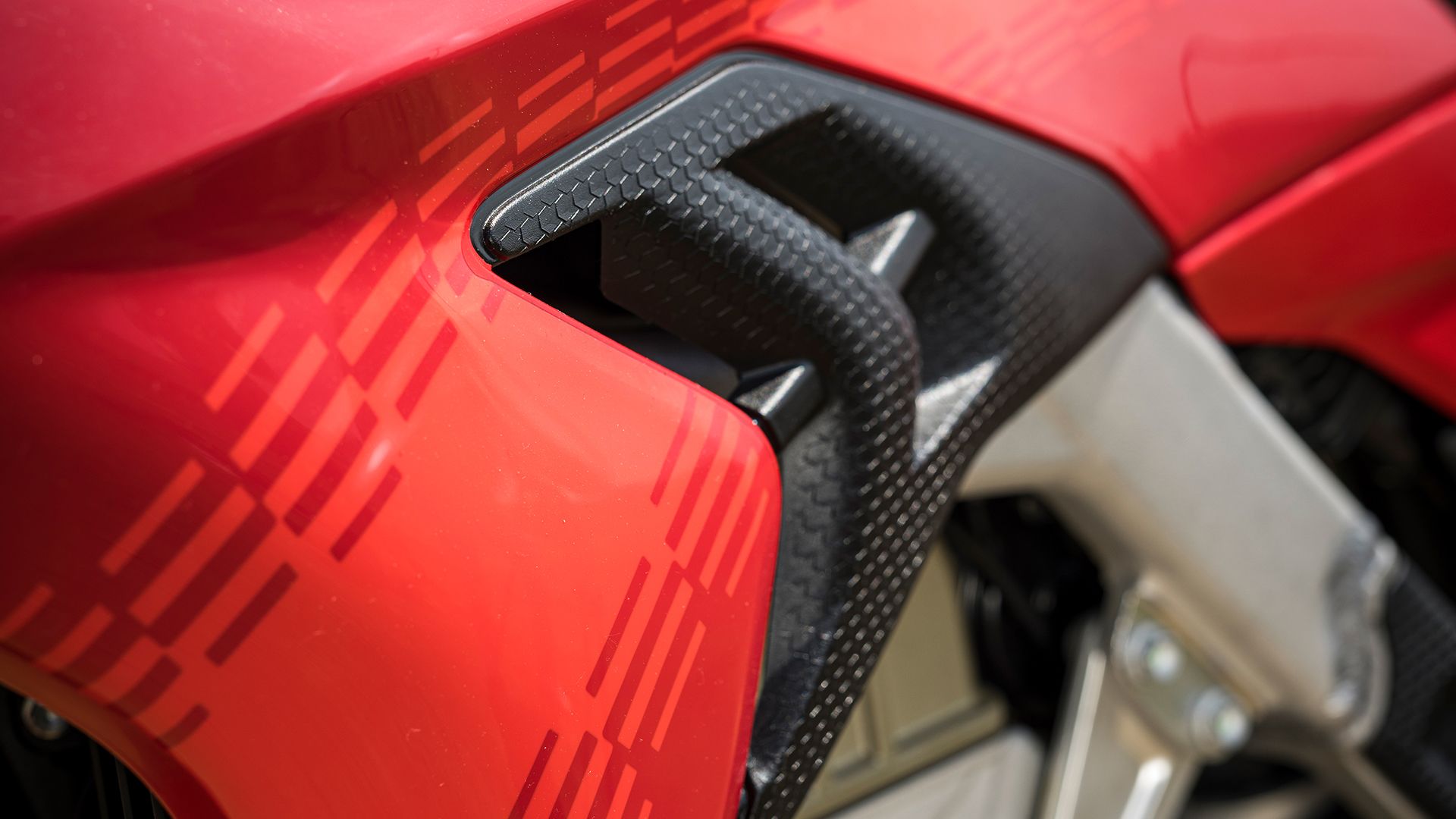 Desmo450发动机在9400 rpm转速下可输出63.5 hp的最大功率,在7500 rpm转速下可爆发53.5 Nm的峰值扭矩。转速限制器设定在11,900 rpm,为同类车型树立了新的标杆。为确保发动机在极端工况下也能稳定输出,我们为其配备了菱形散热器,其散热面积比传统设计增大了6.5%。这种设计在不影响车手活动自由度的前提下,确保了更高效的冷却效果,进而提升了发动机的性能可靠性与稳定性。