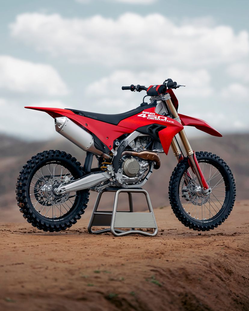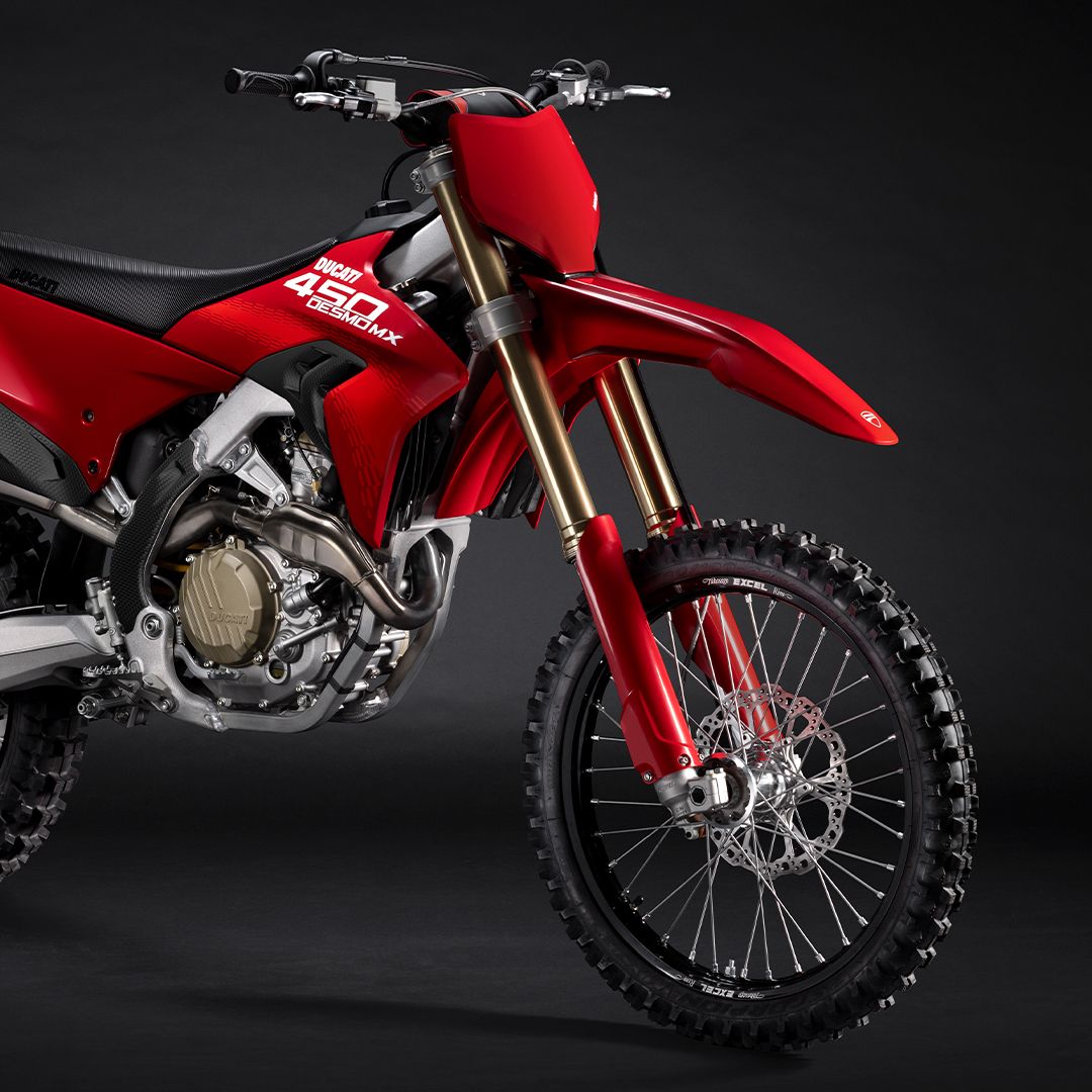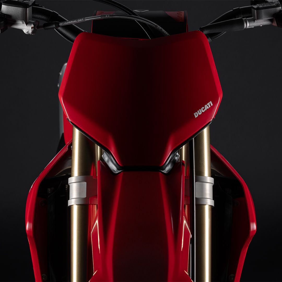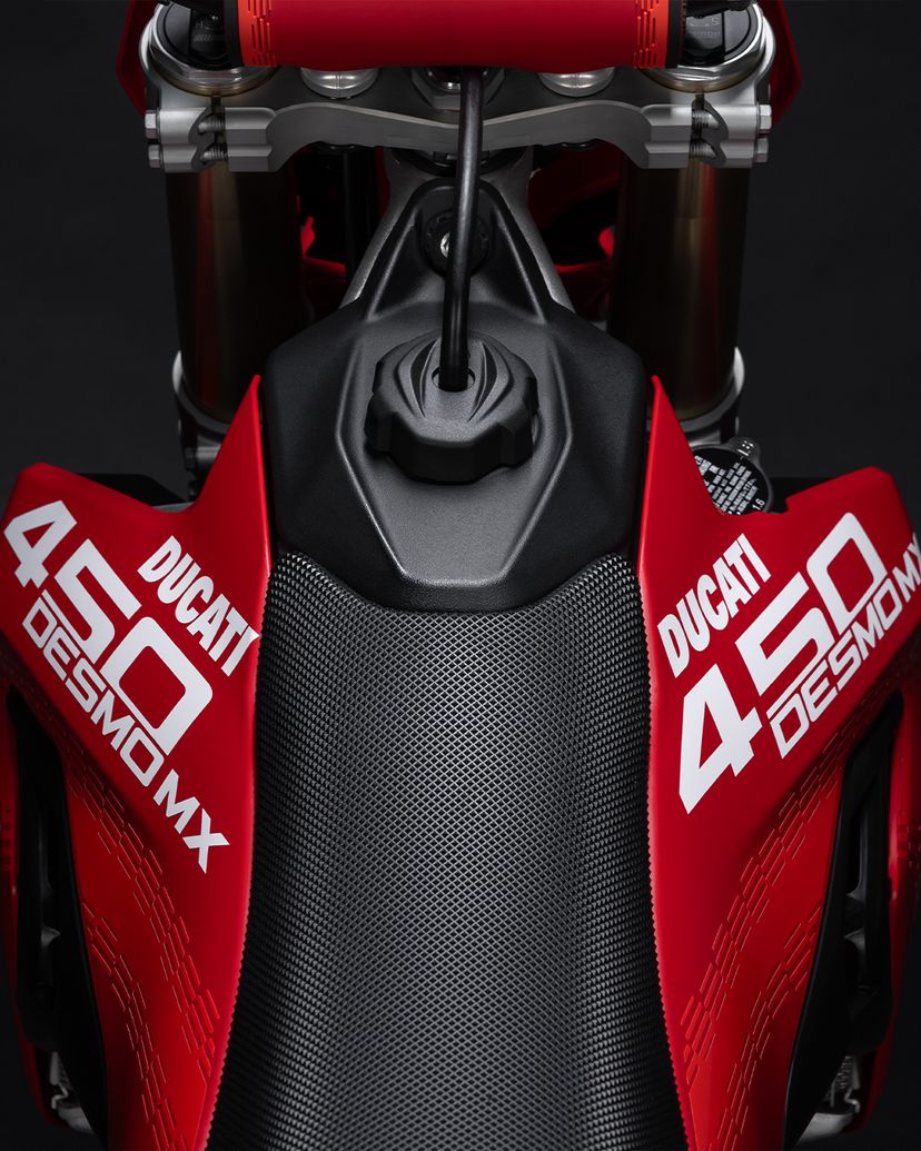 Desmo450 MX围绕其澎湃核心——63.5 hp的 Desmo450 发动机打造,该发动机是越野摩托车历史上首款采用 Desmodromic气门正时系统的四冲程单缸发动机。我们坚持“发动机优先”的设计理念,以发动机塑造整车形态,重新定义了设计概念。