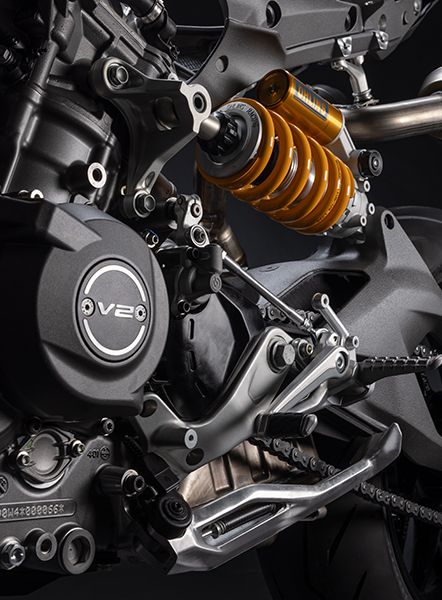 890cc排量释放纯粹双缸激情:全新V2发动机仅重54.4公斤,可输出120马力(搭配竞技排气可达126马力)。全转速区间充沛扭矩输出与高转运动性能完美结合,将骑行舒适性与驾驭乐趣推向极致。