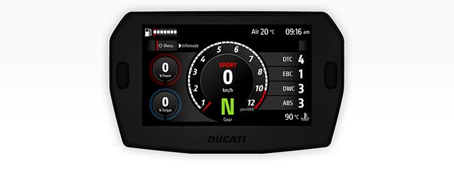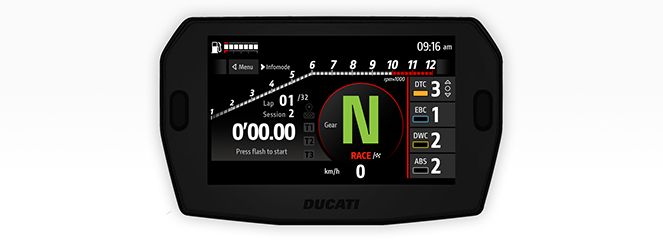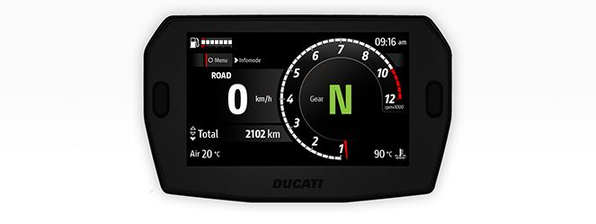 全新仪表盘承袭自Panigale V4的设计语言,配备整合式用户界面,集成所有警示灯号并提供三种信息显示模式,实现全面骑行掌控与所需信息一目了然。