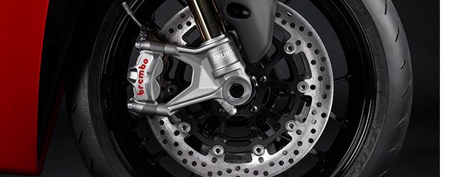 Brembo制动系统确保赛道强力制动与公路精准操控:前制动采用M50单体卡钳(4×30mm活塞)、320mm制动盘及径向/PR16/21主缸;后制动为245mm单盘配置。