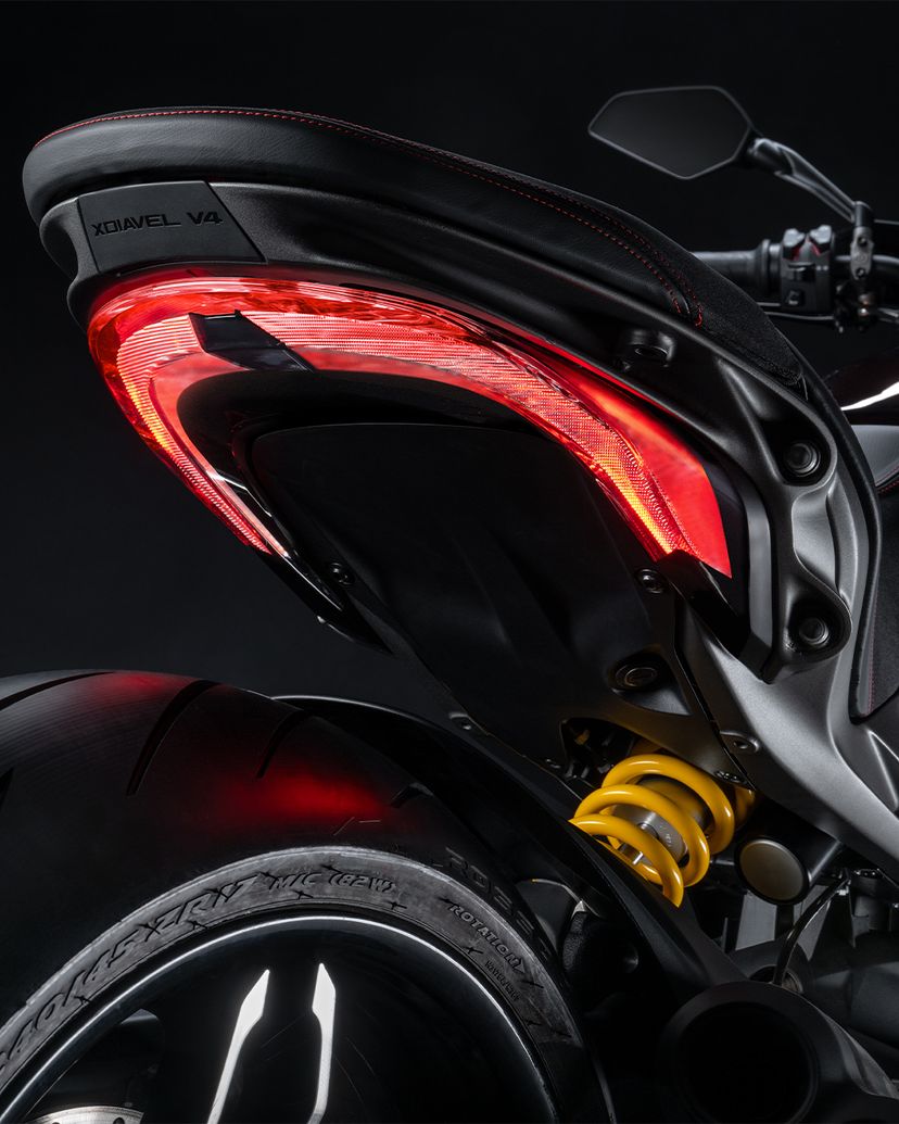 新款杜卡迪XDiavel V4的核心是V4 Granturismo发动机,其技术源自杜卡迪在MotoGP赛事的丰富经验。这款发动机动力强劲、扭矩充沛且运行极为平顺,同时轻巧紧凑,性能超凡,线性动力输出适合各种骑行风格。独特的抛光饰面令这款工程杰作在XDiavel V4上更显别致,化身为一大设计元素。
