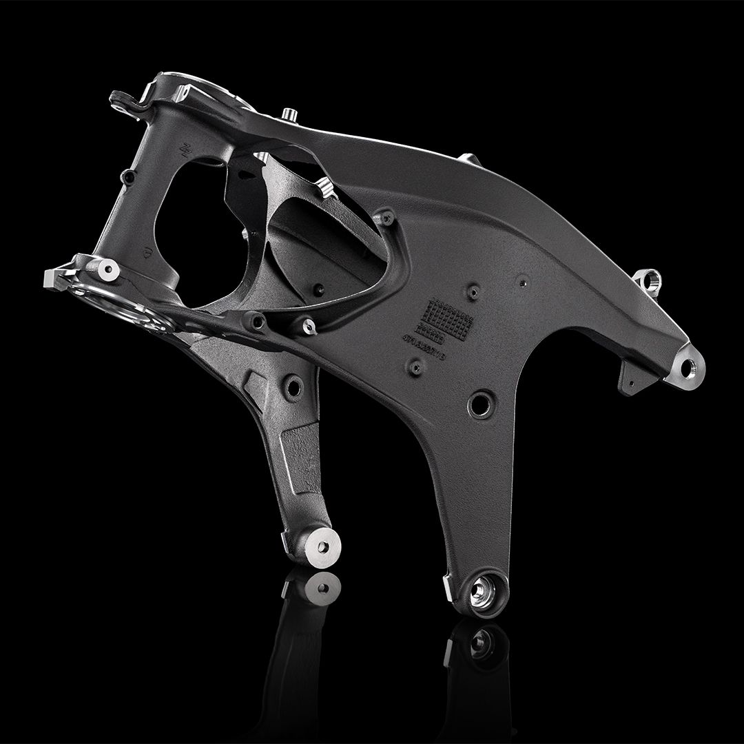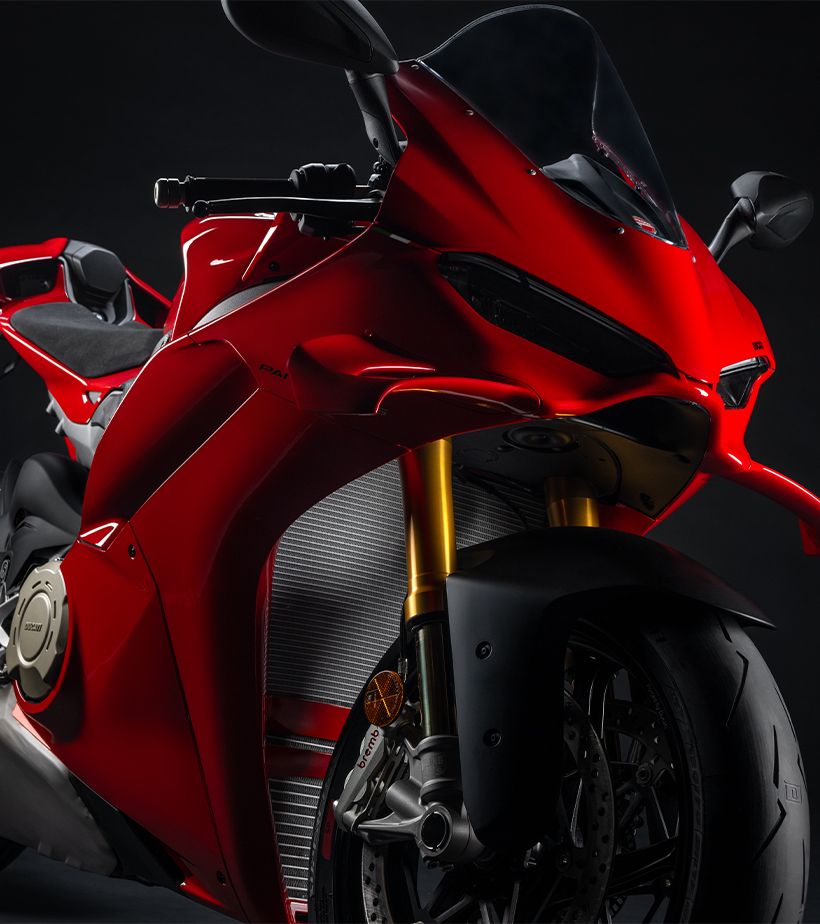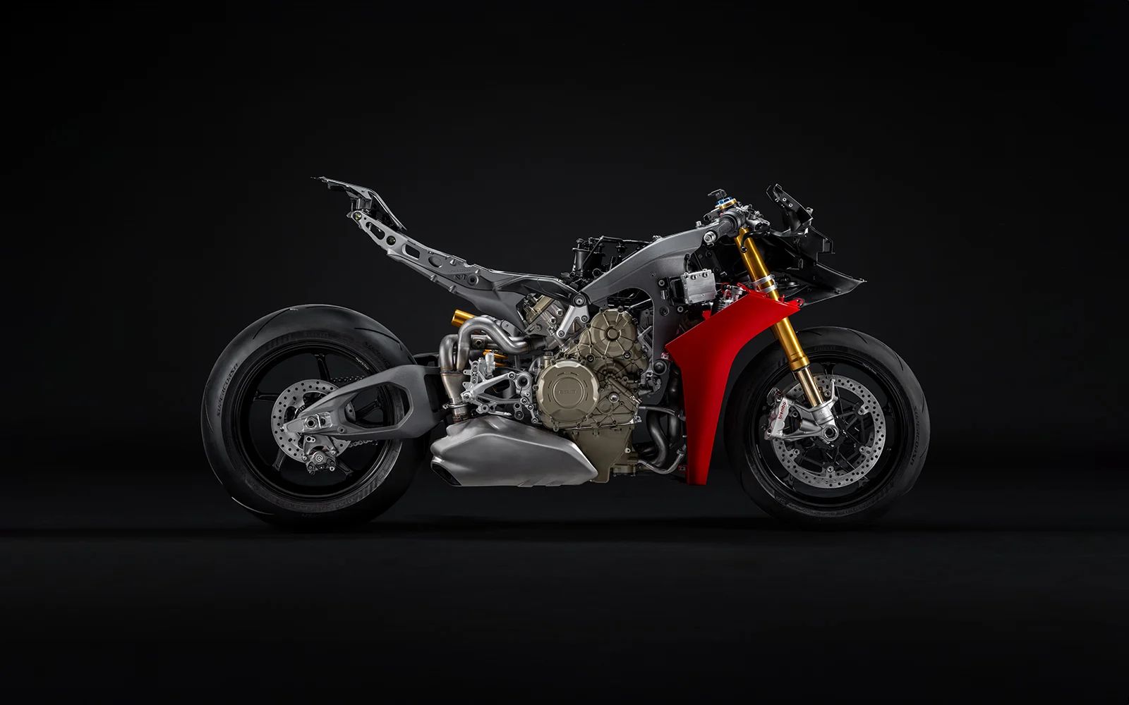 全新Panigale V4使用了由 Ducati Corse在MotoGP中开发的“前车架”。横向刚度降低了40%,而纵向刚度保持不变,该组件的重量减轻了17%。增加的灵活性提升了在过弯时的前端感觉,可以更好地利用轮胎。因此,车手可以更轻松地将摩托车驶入弯道,自如地保持线路,并更快速地过弯。