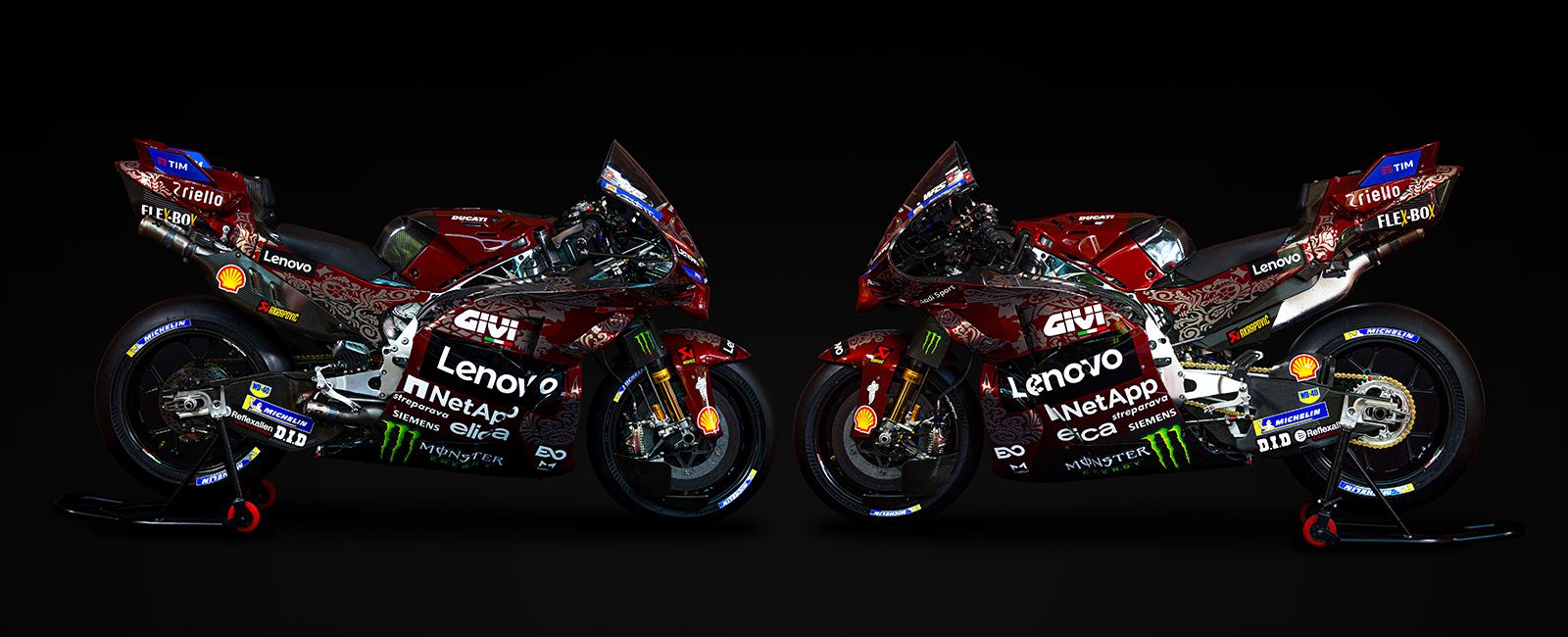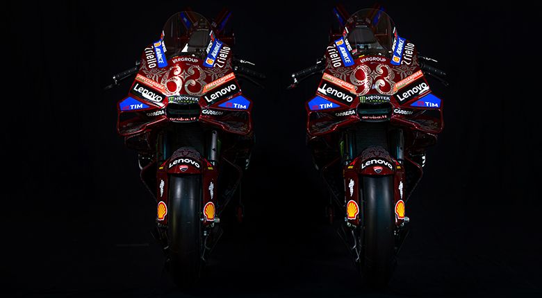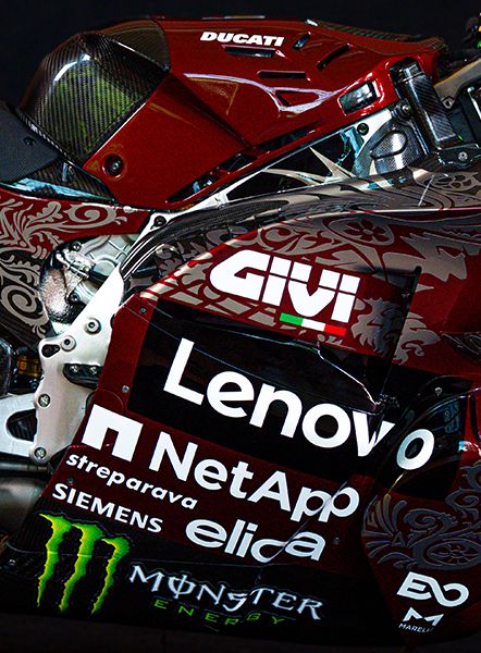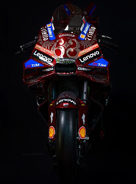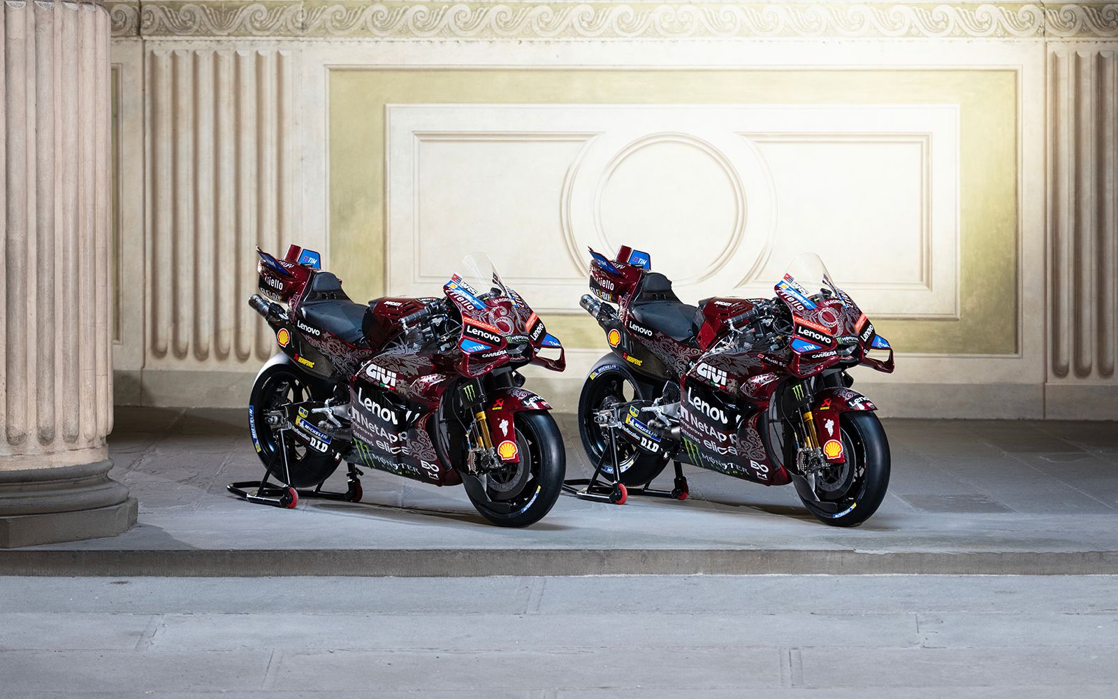 杜卡迪联想车队的Desmosedici GP赛车及车手们身着独特的涂装和赛车服亮相赛道,演绎 “艺术与速度” 的意大利传奇。设计由阿尔多·德鲁迪(Aldo Drudi)操刀,历史学家马尔切洛·西蒙内塔(Marcello Simonetta)倾力支持,灵感承袭列奥纳多·达·芬奇的素描名作《老将领》之魂,同时汲取尼可罗·马基雅维利所代表的文艺复兴谋略智慧——这位思想家完美诠释了灵敏机变与战略远见。