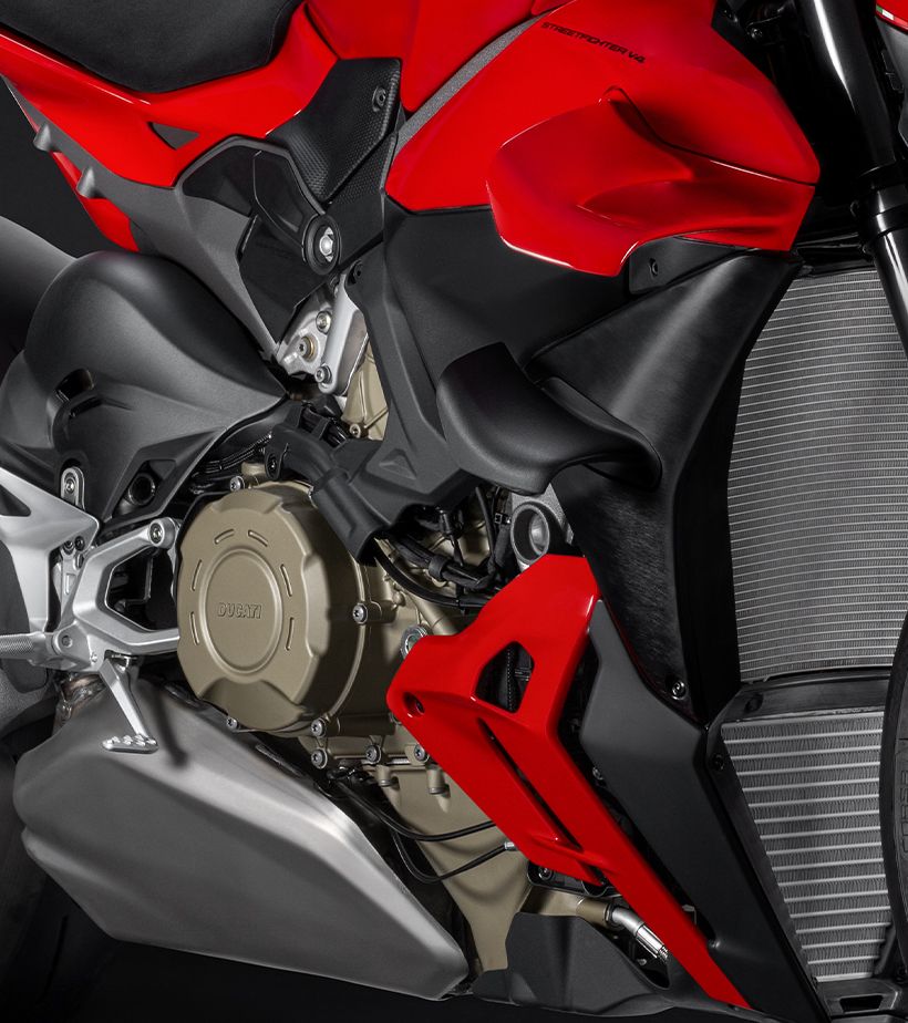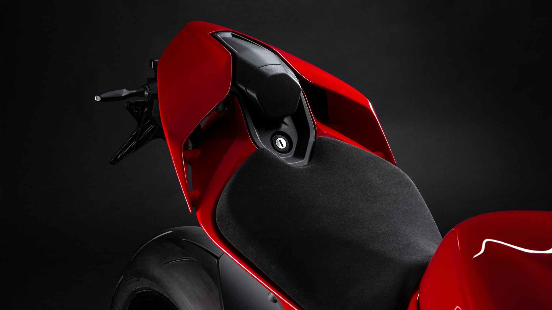 新款Streetfighter V4提供了更宽裕的纵向空间、更厚的座椅以及集成在侧板上的两条风道,进一步提升了骑行舒适性。这些设计可将热空气从腿部引开,改善热舒适性,即便在最激烈的骑行条件下也能确保出色的操控。
